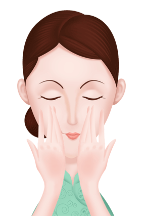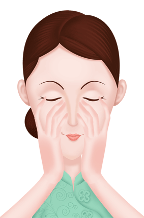 2、由下巴到耳侧,由鼻翼到耳中,颧骨到太阳穴,由额心往两侧横擦,再顺着鼻梁从上往下轻拭,鼻梁两侧和上唇处,来回轻试,从下巴往两颊提拉。