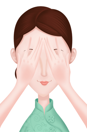 6、两手搓热,手心包裹整个眼部。