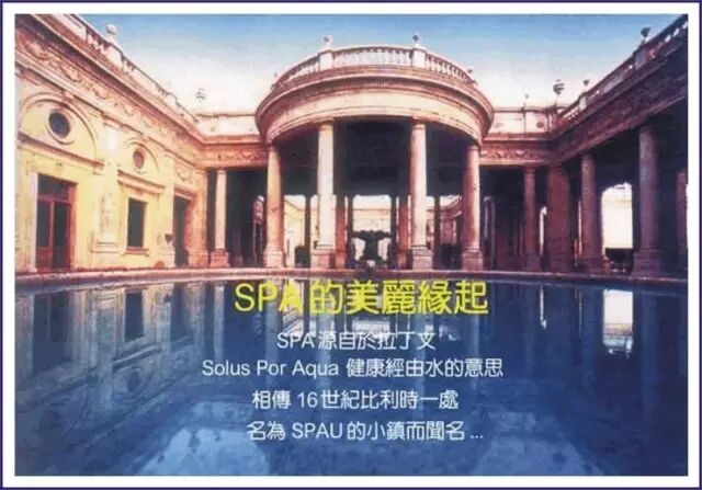 SPA 一词可从拉丁原文「Solus Por Aqua」译为 - 健康经由水而来。