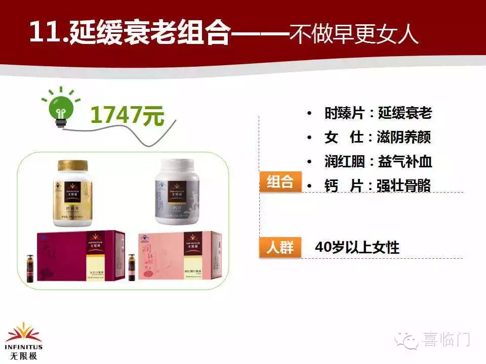 | 抗衰老、美容 | 增健+润红胭+时臻+钙片 |
