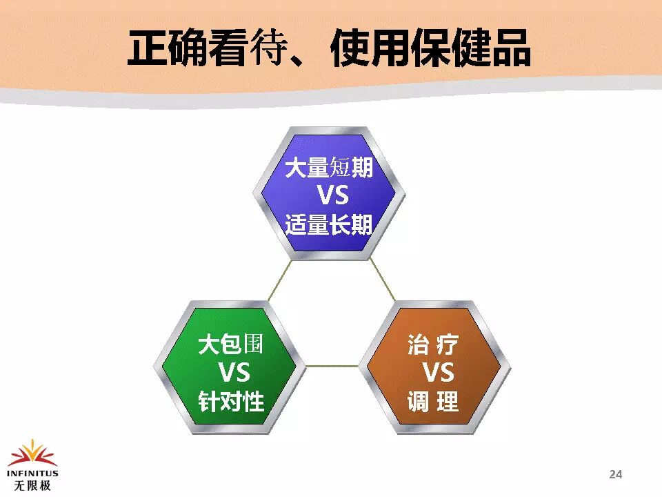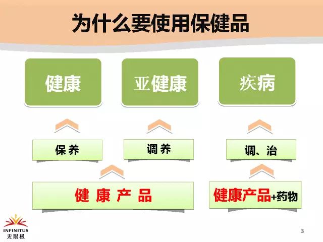 | 说明:保健品在人体内的作用不是治疗,是透过调节免疫,增强体质,让一个人不得病、少得病、晚得病、得了病比别人轻、不得少的恶性疾病。对病人起到辅助治疗、减轻药物副作用、提前康复的作用。但是对于免疫系统、内分泌系统等慢性疾病,医院没有要治疗(例如:糖尿病、失眠、高血压、月经紊乱……)药物,只有提高自身免疫功能才能康复的症状,这类人群最适合使用保健品。 | |