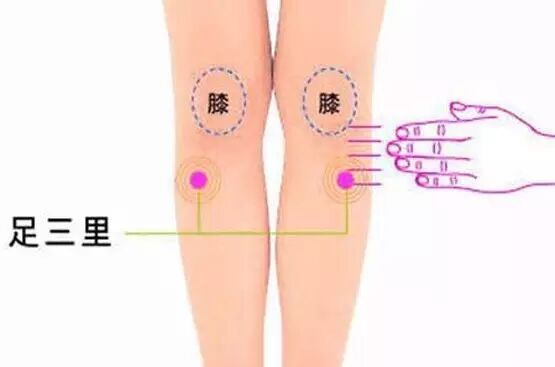 【足三里穴】:位于小腿外侧,犊鼻下3寸,犊鼻与解溪连线上。