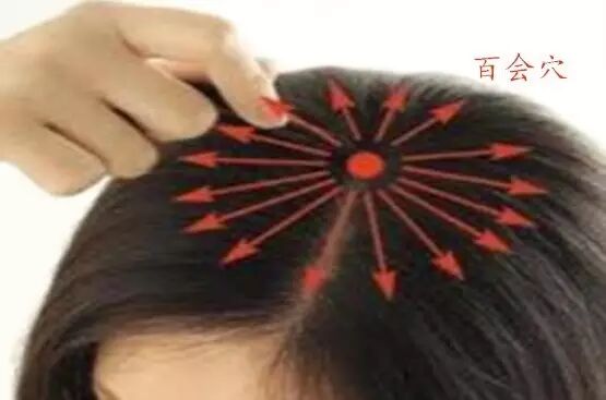 【百会穴】:百会穴位于背部,后发际正中上7寸,当两耳尖直上,头顶正中。