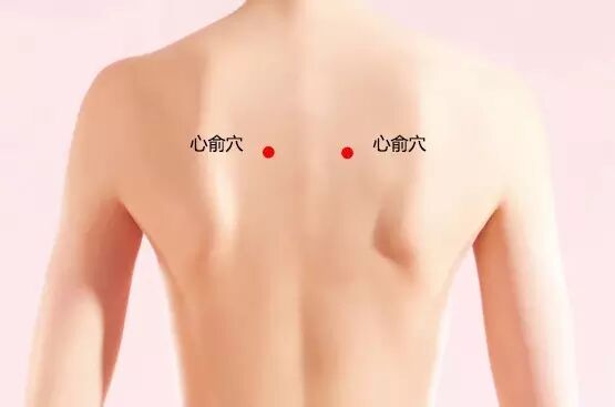 【心俞穴】:位于第5胸椎棘突下,旁开1.5寸处。