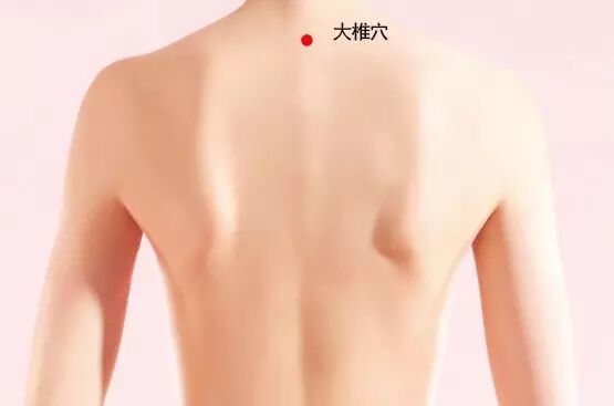 取穴方法:取穴时正低头,大椎穴位于人体的颈部下端,第七颈椎棘突下凹陷处。若突起骨不太明显,让患者活动颈部,不动的骨节为第一胸椎,约与肩平齐。