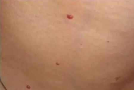 血痣基本上长在身上,手上,腿上,就像打完针的血泡,一个红点,大的像枸杞子那么大。血痣提示脂肪痰湿的积滞,容易发生脂肪肝、肝硬化、胆囊炎等疾病,对见于脂肪肝、慢性肝炎的病人主要长在胸、腹部。血痣越大越多,肝的代谢功能越差,脂肪代谢差,容易血脂过高,胆固醇过高。