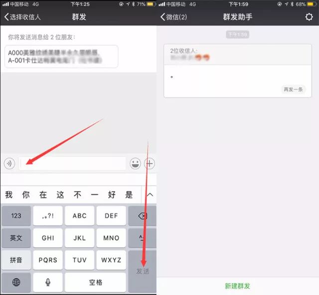5、在输入框输入需要群发的消息,然后点击“发送”,消息就群发出去了。