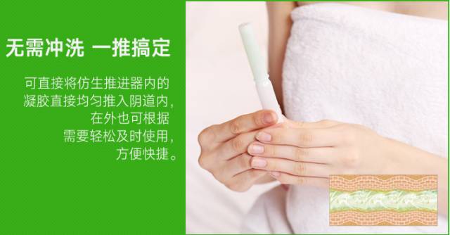 抑菌护阴 深层护阴,排出私处垃圾,维护私处环境平衡私处瘙痒 缓解瘙痒,缓解异味,舒缓各处私处问题,从而减轻私处问题的困扰滋润不干涩 凝胶可以补充私处内部需要的营养成分,滋养润滑,舒缓私处干涩状态温和不刺激 草本配方 ,安全不刺激,不影响生育