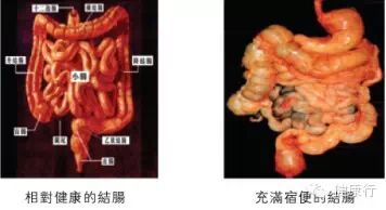 肠道有8-10米长,并且千褶百皱,平均每隔3.5厘米就有一个弯折,人们即使每天都排泄,也总会有一些食物残渣滞留在肠道的褶皱内,它们在细菌的作用下干结、腐败、发酵,日积月累,这些食物残渣最终形成厚达5-7毫米,重达5-6公斤的黑色、恶臭、有毒的物质,并像锈一样牢牢地粘连在肠壁上,其坚硬程度与轮胎相似,它们慢慢侵蚀着我们的身体,人们习惯称之为宿便。