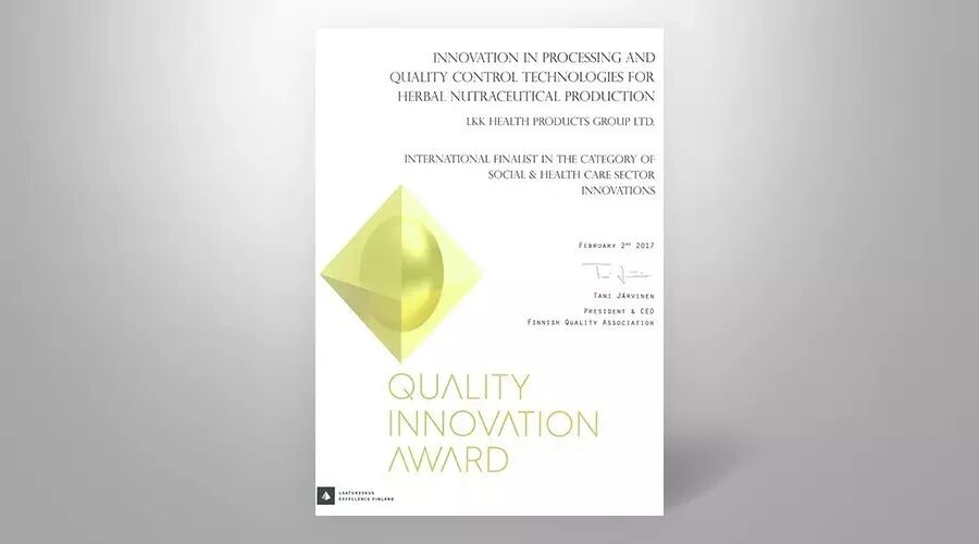 At the Quality Innovation Award 2016 ceremony recently held in Prague, Czech, Infinitus (China) Company Ltd. (hereinafter referred to as “Infinitus”), a member of LKK Health Products Group (LKKHPG), received the "International Finalist in the Category of Social & Health Care Sector Innovations" award for its "Innovation in Processing and Quality Control Technologies for Herbal Nutraceutical Production" project.